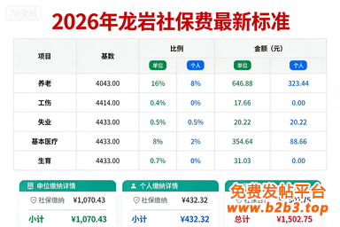 服务关键词:龙岩2026年社保标准多少,外地公司在龙岩用工如何缴纳社保,龙岩办事处社保怎么交,龙岩五险一金代买,龙岩本地劳务派遣公司哪家专业,龙岩职工社保外包,龙岩企业社保代缴服务方案。