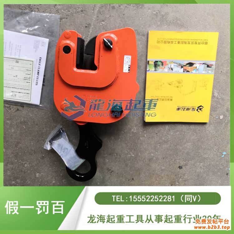 龙海起重工具有限公司自2011年5月开始销售日本鹰牌EAGLE CLAMP钢板吊钳,日本鹰牌EAGLE CLAMP无伤钢板吊钳NNE型拥有ISO 9001认证(可提供),以国家标准可追溯的专用试验机进行最大使用载荷2.5倍的试载试验,以及洛克韦尔硬度试验、阿姆斯勒拉伸试验机的破坏试验。保持了较高的证据水平。设计•制造阶段使用负荷超过5倍的安全标准,以《劳动安全卫生法》、《起重机等安全规则》等安全系数(断裂负荷5倍以上)为准,承诺原装进口、假一罚百!