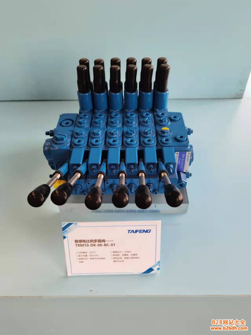 多路阀系列 泰丰智能 工程机械液压元件 TM412系列负载敏感型多路阀 通径: 2 压力:泵侧350bar 执行元件侧420bar 流量: 120L/min 主要特点: .片式结构可按需灵活组合 .负载压力补偿,与负载压力无关的流量分配 液压先导控制,电比例(或开关)控制 开中心,用于定量泵系统 闭中心,用于变量泵系统 -次及二次安全阀(过载且带补油功能) LS溢流阀(每联均有LS溢流阀选项,可分别限定油口的工作压力)控制,微动性好,舒适的操纵性 .重复精度高,滞环小 主要应用领域1举例: 高空作业车,混凝土泵车,伸缩臂叉车,农业机械,煤矿机械。 订货型号: TM412- B「xE24-08- xX)-01① ②③④⑤ ⑥⑦