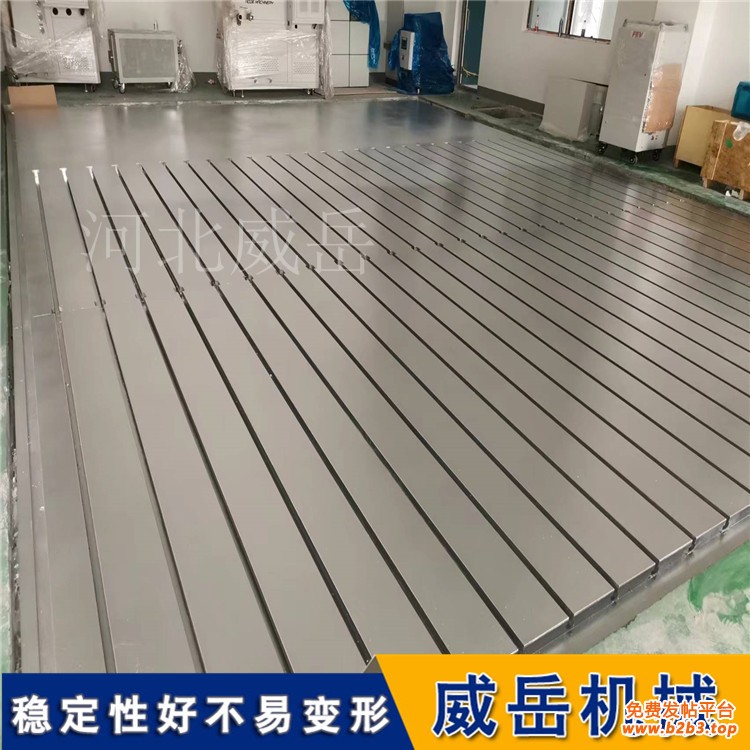 这种高精度基准为后续作业提供了 “统一参照系”:在零部件检测中,可直接将工件放置于地板表面进行尺寸测量、形位公差检测,无需额外搭建基准平台;在设备装配时,能确保电机、齿轮箱、机架等部件的安装面处于同一水平或预设角度,减少因基准偏差导致的装配间隙、运行异响等问题。对于数控机床、大型镗铣床等细致设备的安装调试,T 型槽铁地板更是不可或缺 —— 它能通过调整地脚螺栓与 T 型槽的配合,将设备无误固定在预设位置,保障加工过程中刀具与工件的相对位置精度。http://www.chinaweiyue.com/